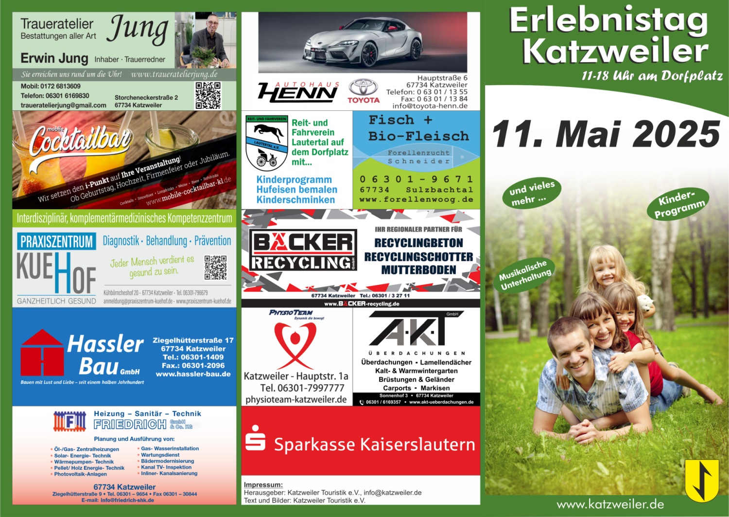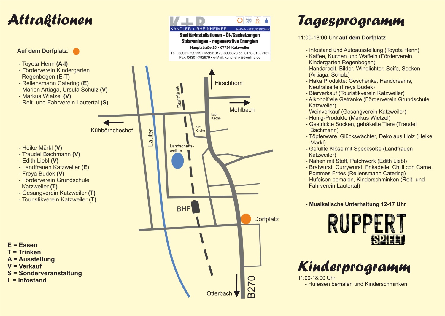 Auch in diesem Jahr findet wieder von 11-18 Uhr der Erlebnistag Katzweiler auf dem Dorfplatz statt.